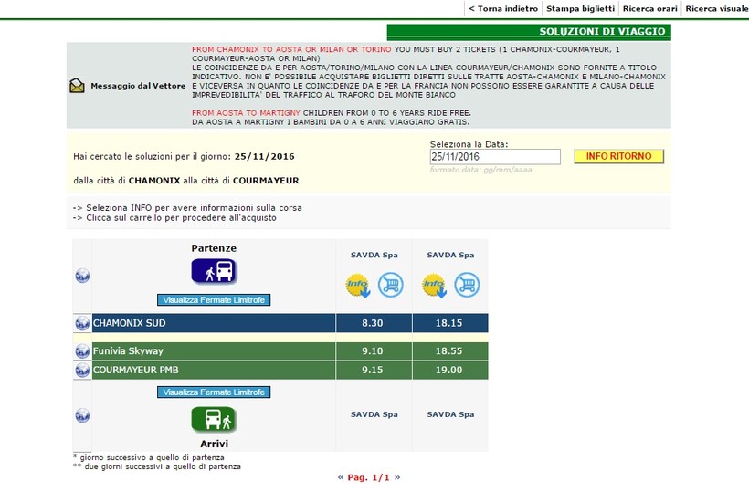 Вам нужен автобус №590. В зависимости от дня недели автобус утром отправляется с 8 до 10 утра и вечером с 5 до 7. Всего два рейса, расписание уточняйте на сайте Savda, для этого введите от «Courmayeur» до «Chamonix». Автобусы ездят чистые, с кондиционером, как и везде в Италии.