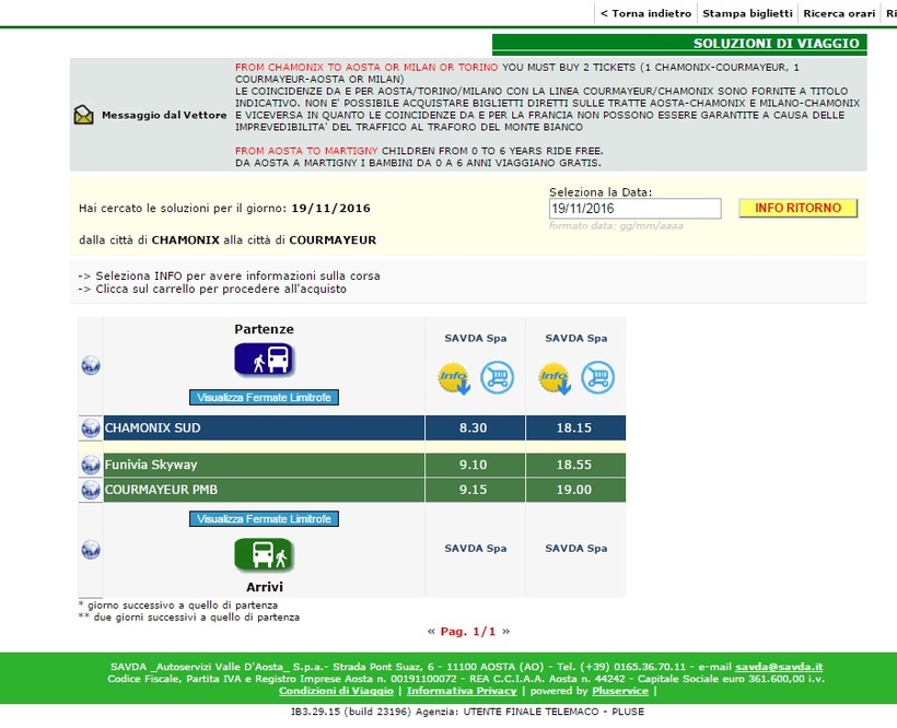 Чтобы узнать расписание, зайдите на сайт перевозчика Savda и введите от «Chamonix» до «Courmayeur».