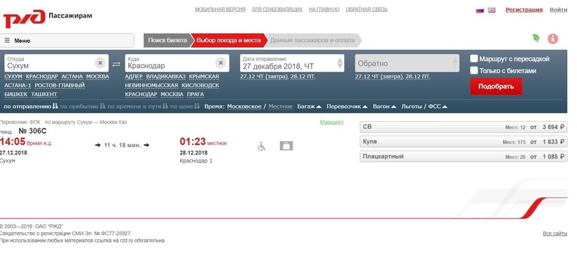 - Отправление от железнодорожной станции «Сухум» в 14:05 (время местное). В столице Кубани вы будете через 11 часов и 20 минут. ЖД станция в этом населенном пункте называется «Краснодар 1».