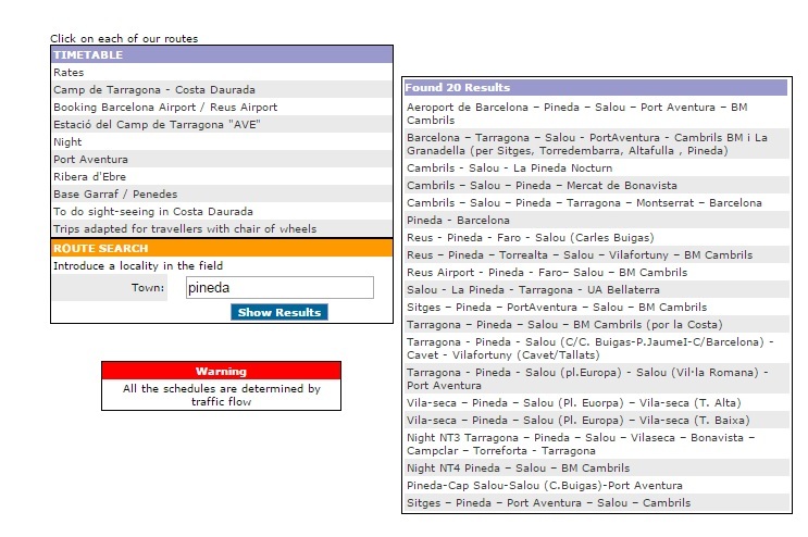 Перечень маршрутов по городу Ла-Пинеда можно посмотреть тут, для этого наберите в графе «town» название населенного пункта «pineda» (в расписании часто указывается без «la»):