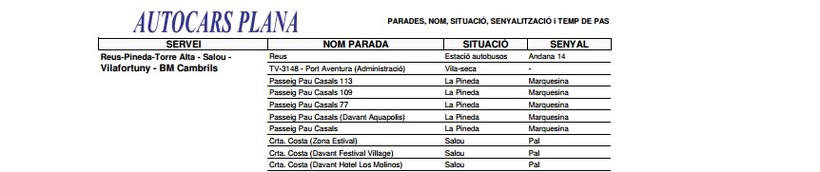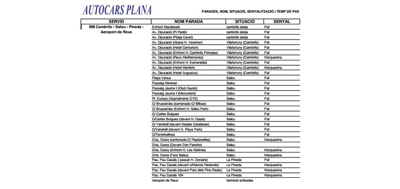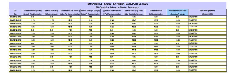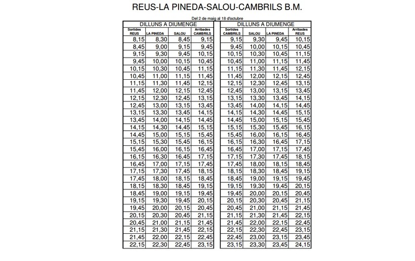 Приблизительно через 15 минут автобус прибывает на автостанцию в Реусе (Estació autobusos), находится она на Avinguda de Salou, 2. У этого же перевозчика есть рейс в аэропорт, но автобус ездит не каждый день и в определенное время вот его расписание: