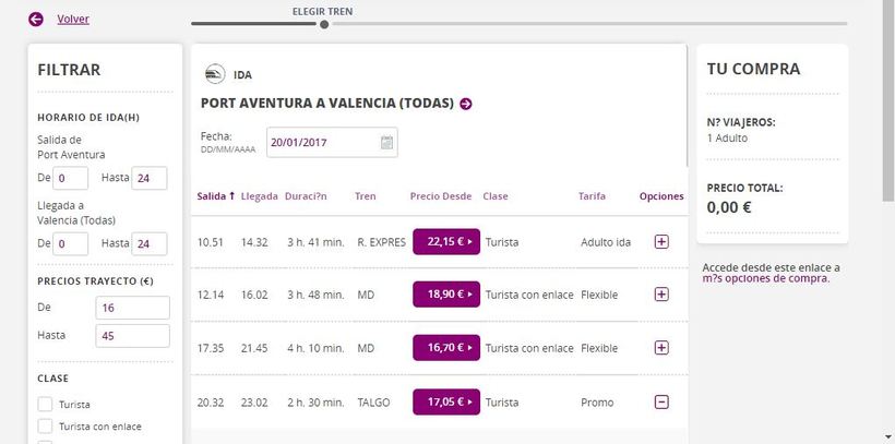 - Билет от Салоу до Валенсии будет стоить 20,65 евро.