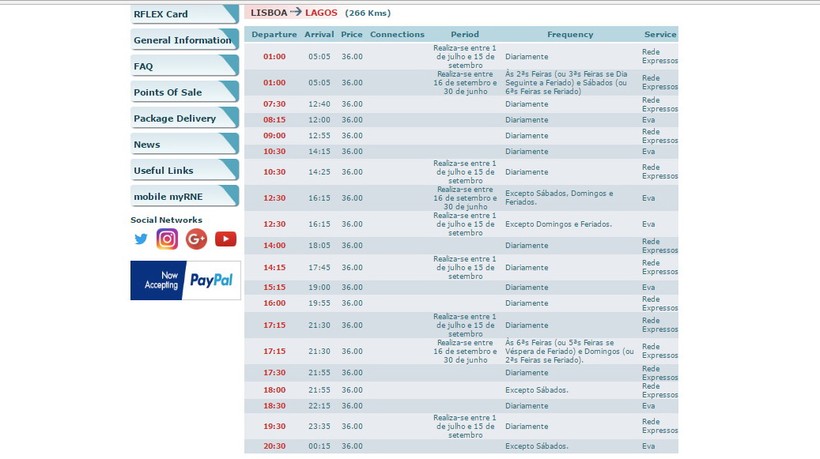 Нужно либо обратиться в кассу перед отправлением рейса, либо купить билеты заранее на сайтах перевозчиков Eva Bus, Renex и Rede Expressos. Мы обычно предпочитаем пользоваться вторым способом покупки билетов, чтобы уж точно быть уверенными, что места нам достанутся.