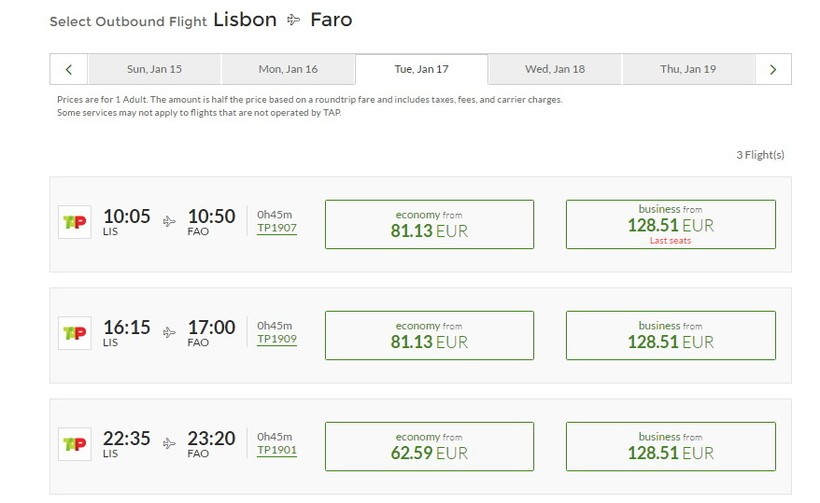 Цены на билеты зависят от компании, осуществляющей рейс по маршруту Лиссабон-Тунеш, и от класса комфортности, который вы выберете.