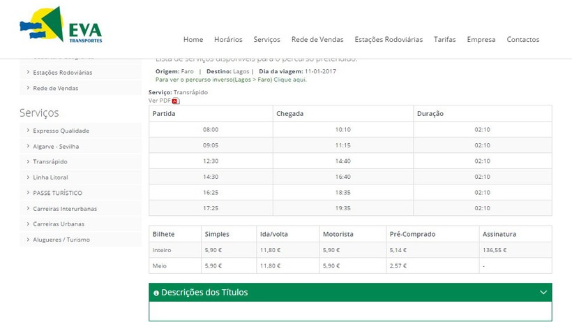 Билеты можно купить онлайн на сайтах Eva и Rede Expressos, а также в кассах автовокзала.