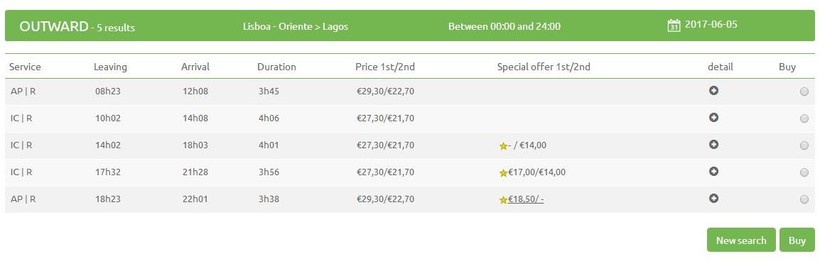 Билеты на поезд Intercidades стоят 27 и 21 евро. Первый класс отличается от второго лишь наличием индивидуальных розеток на сидении.