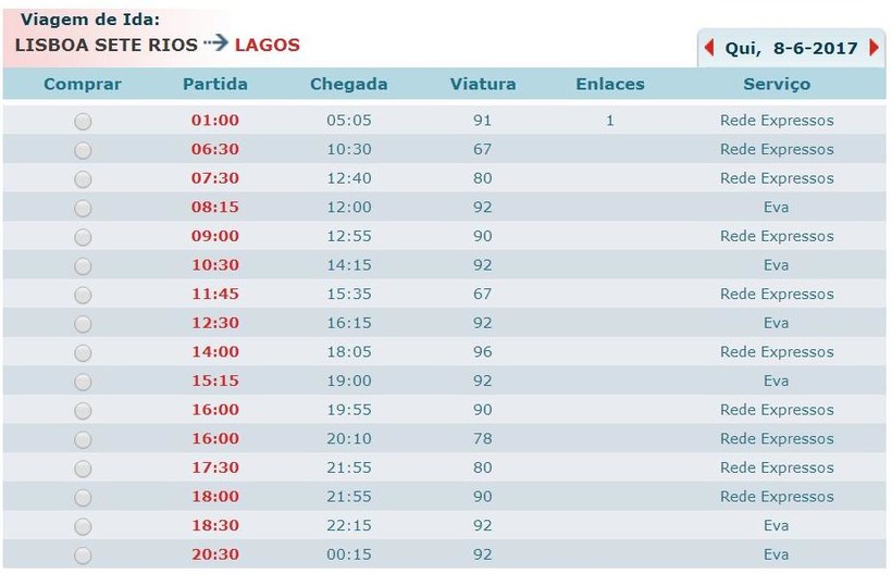 Есть три перевозчика, которые могут довезти вас до Лагоса без пересадки – это Eva Bus, Renex и Rede Expressos. Их общее количество рейсов в день – больше пятнадцати. Автобусы ходят с половины седьмого утра до половины девятого вечера, также есть ночной рейс ровно в час ночи. Отправление – от автовокзала Sete Rios в Лиссабоне.