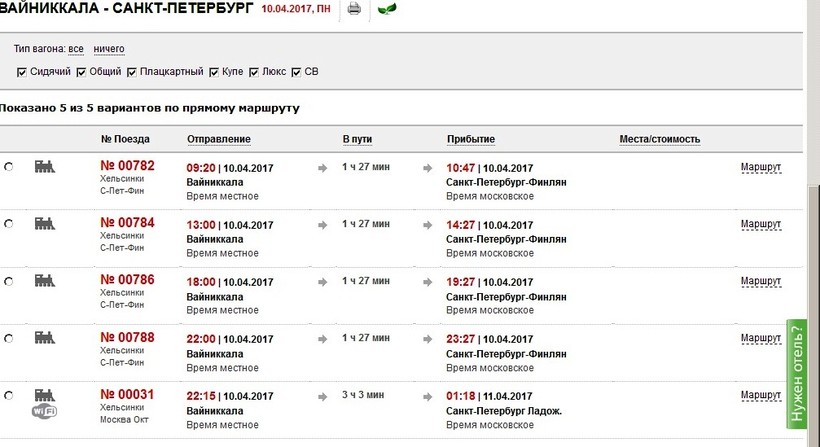 Далее в Вайниккале нужно пересесть на поезд, следующий до Санкт-Петербурга. Это либо фирменный поезд «Аллегро», либо тоже фирменный «Лев Толстой».