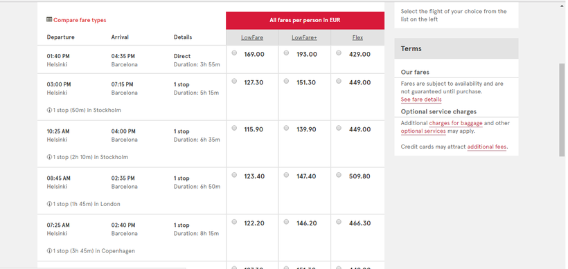 Наша компания добиралась в Хельсинки на автобусе. Из города в аэропорт мы ехали на электричке, ну а в Барселону летели на самолете с пересадкой в Стокгольме – такой вариант оказался дешевле всего.