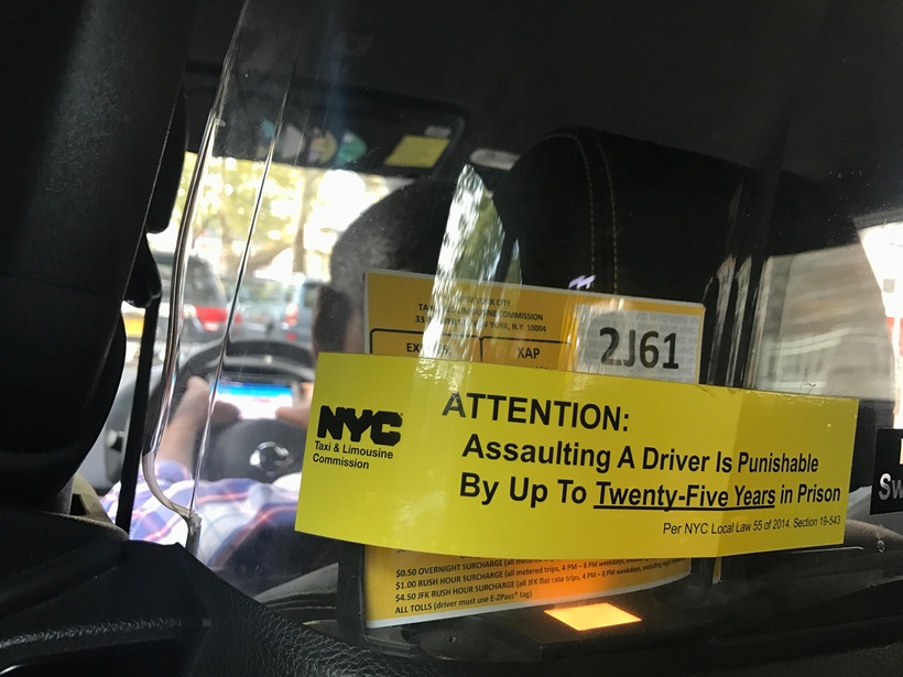 А еще в такси есть вот такая табличка. Говорит она о том, что оскорбление водителя подсудное дело и можно сесть на 25 лет. Честно говоря нью-йоркские таксисты водят так как будто картошку везут и, пожалуй, я могу понять тех кому хочется их оскорблять :)