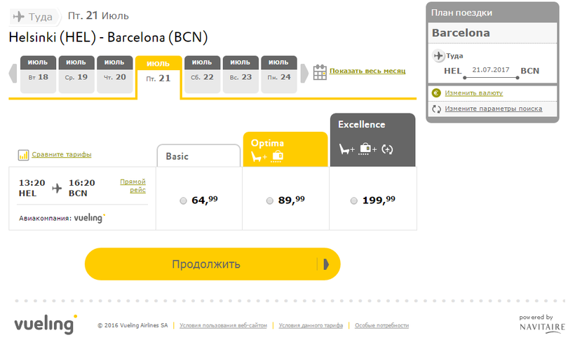 Вот скриншот с сайта «Vueling», прошлогодние тарифы всё ещё имеют силу.
