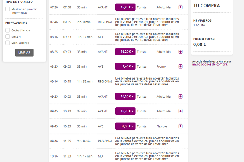 А а следующем скриншоте можно увидеть расписание уже испанских поездов следующих из Барселоны в Жирону.