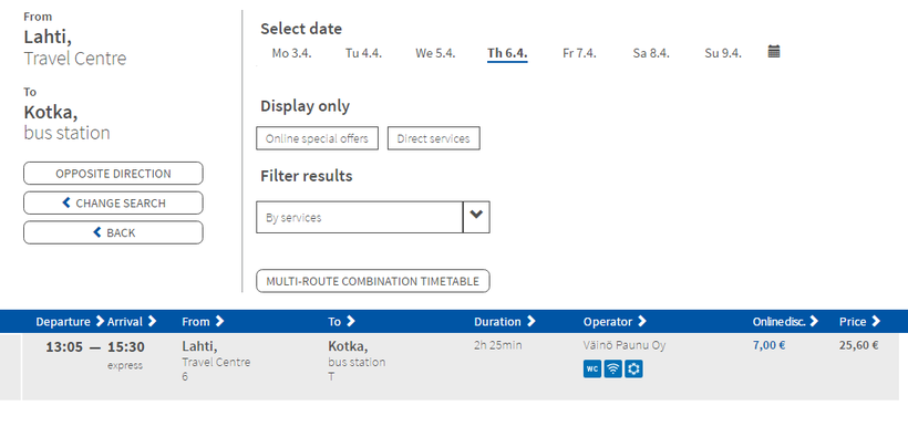 Покупать можно как на сайтах перевозчиков LuxExpress, OnniBus, Paunu, так и в кассе автовокзала Лахти.