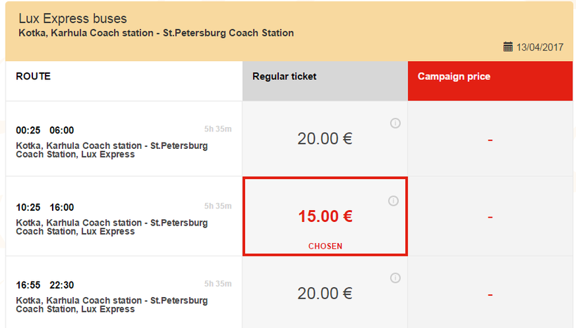 Далее из Котки в Санкт-Петербург курсируют автобусы от известной в Прибалтике и Финляндии компании LuxExpress.