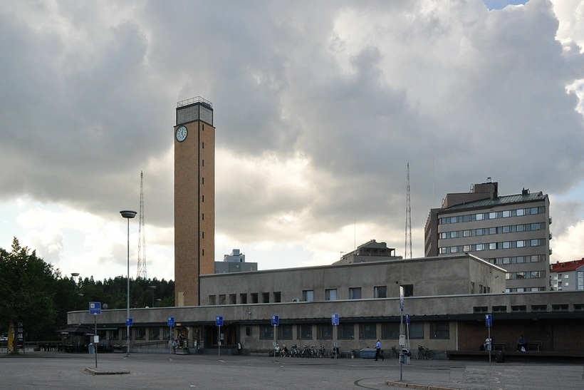 Сесть на поезд можно на железнодорожном вокзала Лахти. Вот на карте отметка, где он точно находится.