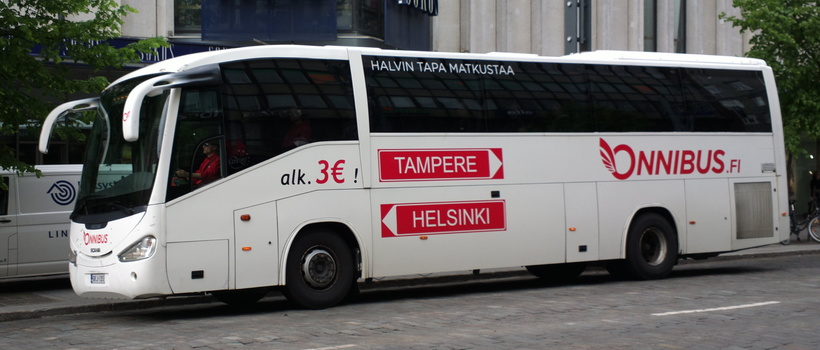 Автобусное сообщение в Финляндии имеет достаточно важную роль. Далеко не везде имеется железнодорожная станция, а вот на автобусе можно проехать откуда угодно и куда угодно. Одной из крупнейших компаний в Финляндии является Onnibus, ее автобусы выглядят вот так:
