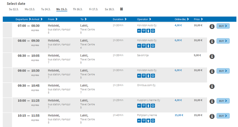 Как вы понимаете, лучше всего покупать билеты через интернет на сайте matkahuolto – это и удобнее, и сэкономить можно.