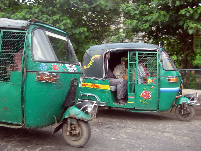 В Дакке много так называемых “Тук – туков” – это одноместная моторикша. Если поторговаться, можно здорово сэкономить и доехать до центра города с относительным комфортом и быстротой. Арендовать их можно около шоссе.
