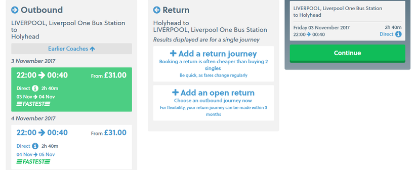 Добраться в Холихед из Ливерпуля можно на поезде и на автобусе компании National Express. Между городами курсирует всего один автобус в сутки, который отправляется из Ливерпуля в 22:00 и прибывает в Холихед в 00:40.