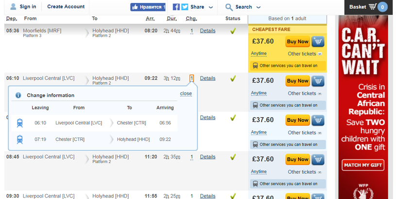 Гораздо более удобно доехать в Холихед на поезде. Прямых рейсов между городами нет, придется делать пересадку в Честере, но особых неудобств такое путешествие не доставит. Первый состав отправляется из Ливерпуля в 05:36, последний – в 23:45. Интервал движения в зависимости от времени суток составляет 40-60 минут. Большинство составов отправляется с вокзала Liverpool Central.