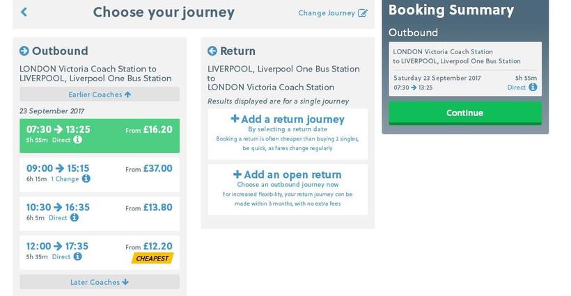 Билеты на автобус, как правило, стоят дешевле, чем на поезд. Обычно проезд обойдется в 11-12 фунтов стерлингов (12,5-14 евро), но иногда можно найти совсем недорогие предложения всего за 5 фунтов стерлингов (5,5 евро).