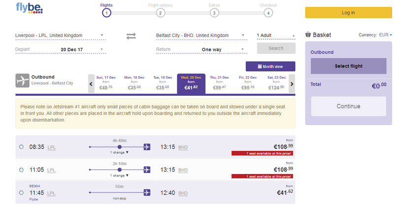 Самолеты компании Flybe вылетают из Ливерпуля в 11:45. Перелет занимает всего 55 минут.