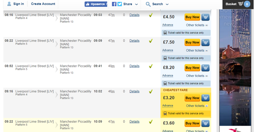 Билет на поезд стоит совершенно недорого по меркам Великобритании – 4,3-4,5 фунтов стерлингов (около 5 евро).