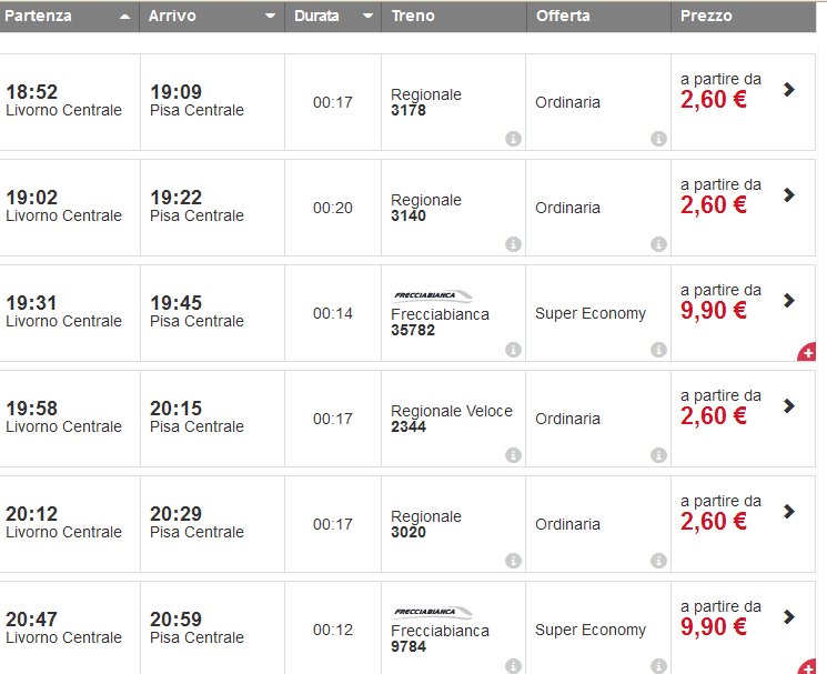 Как видите, поездов, следующих в сторону Пизы, очень много