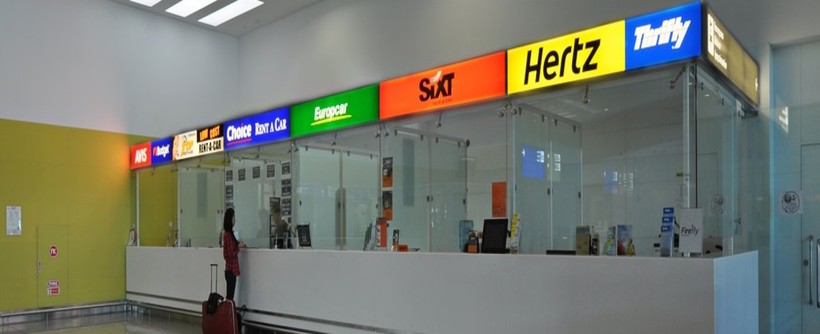 В зоне прилета терминала работает несколько компаний, которые предлагают пассажирам услуги по аренде автомобилей. Ниже на фото Вы видите офисы этих компаний.