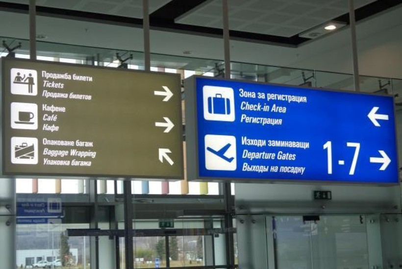 По прибытию нас с рейса забрали небольшие автобусы и доставили за три минуты до здания терминала. Наш рейс обслуживало две стойки паспортного контроля (всего их там около десяти). Персонал работает оперативно, так что через десять минут мы с мужем уже забирали свои чемоданы на транспортере. В середине терминала заблудится невозможно. И это не только потому, что он маленький :). Все надписи и информационные табло кроме болгарского языка, дублируются еще на английском и русском языках.