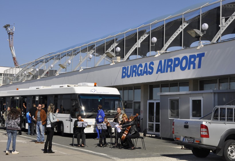 Второй по значимости туристический аэропорт Болгарии. Сюда также, как и в аэропорт Варны летают прямые рейсы из России, а именно из Москвы, Санкт-Петербурга и Новосибирска. Летом, во время туристического сезона, многие авиакомпании также организовывают прямые авиарейсы из пары десятков других городов России от Калининграда до Владивостока. Также сюда регулярно летают рейсы из многих стран Европы и дальнего зарубежья. Этот крошечный аэропорт больше напоминает летнее кафе на пляже. Глядя на него, становится совершенно очевидным, что когда его строили, не рассчитывали на большой поток туристов. Из-за большого наплыва туристов, в аэропорту сложно найти место в зале ожидания. Также мы стали свидетелями огромных очередей на паспортном контроле и у ленты с багажом. Правда, из-за маленького размера, в аэропорту совершенно невозможно заблудится. Несмотря на крошечный размер, здесь все же смогли разместиться два кафе, Макдональдс, пиццерия и бар, а также несколько магазинов, Duty Free, пункты обмена валют, VIP зал с офисной техникой. Здесь также позаботились о русскоязычных туристах и сделали очень удобный сайт аэропорта на русском языке.