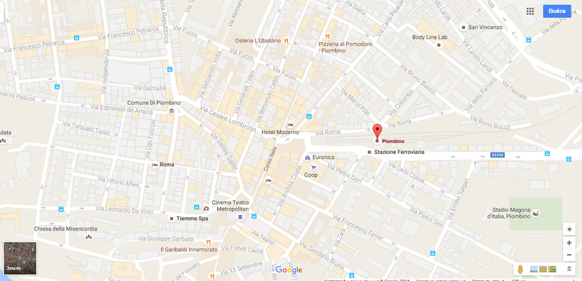 В Пьомбино вокзал находится довольно далеко от моря на улице Рима.