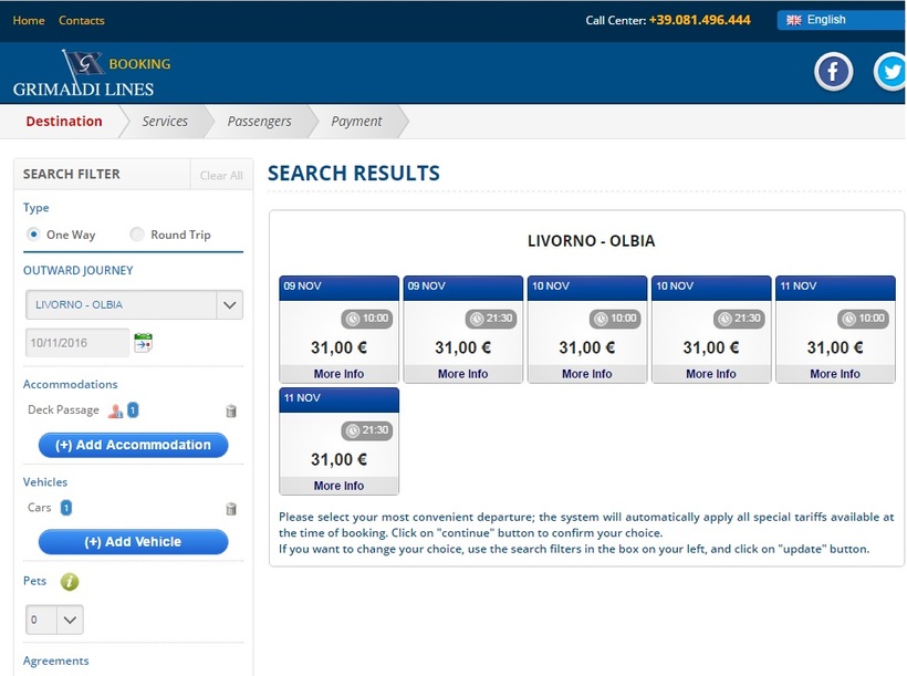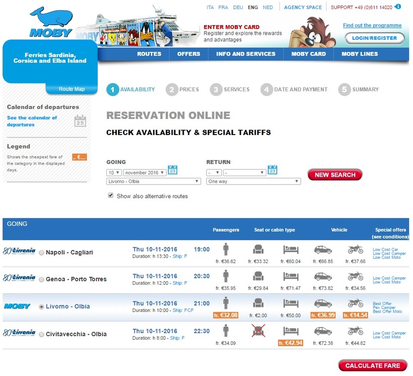 Из Ливорно в Сардинию ходят паромы двух компаний: Moby и Grimaldi lines. Просто так купить билет не получится, придется немного поразмыслить, покопаться на сайте, а тем, кто не знает английского еще и поработать с переводчиком. Но надеюсь мой рассказ хоть немного облегчит задачу.