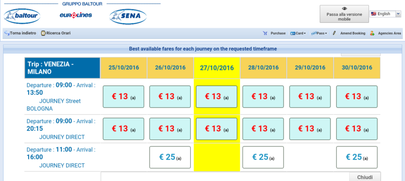 Кроме поезда из Венеции в Милан ездят автобусы двух компаний: Eurolines и Flixbus.