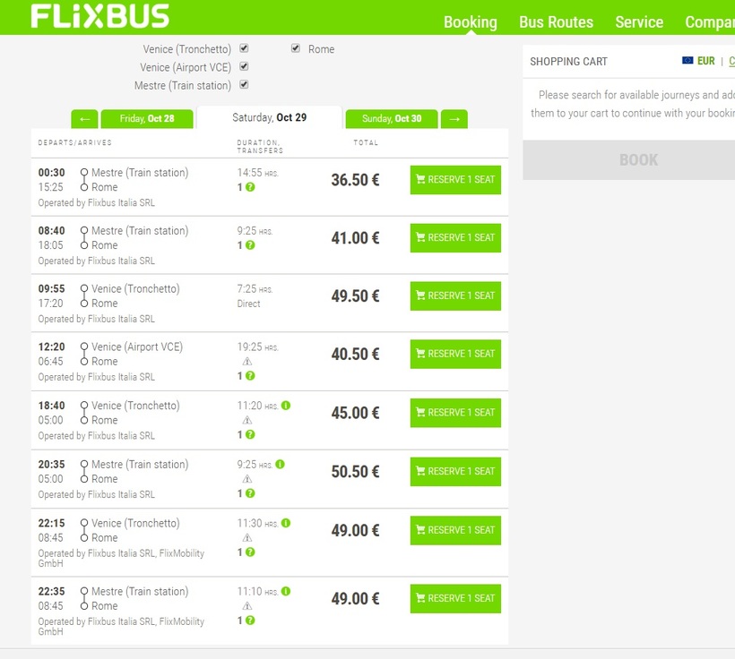 Автобусы в Рим ездят из Венеции, ситуация с ними такая же, как и с поездами - автобусы ездят из Mestre (Train station) и с острова Venice (Tronchetto). Доехать в Венецию можно на автобусе №10А, более подробно о нем было написано выше.