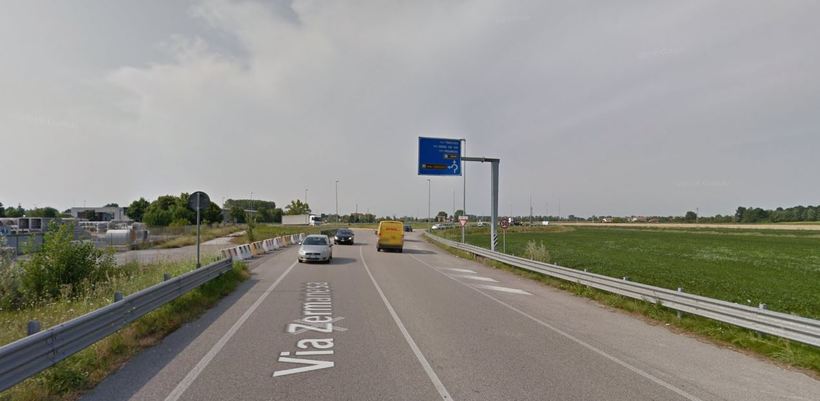 Эта дорога от своих предшественниц качественно отличается тем, что в каждом из направлений можно ехать по нескольким полосам, а сами направления надежно отделены одно от другого. Таким образом, уровень безопасности, а также возможна максимальная скорость намного возрастают. К сожалению, по этой дороге напрямую до Тревизо не доехать. Примерно через 10 минут езды по этой превосходной дороге придется сворачивать на обычную бесплатную автотрассу SP-107 (Via Zermanese), которая выглядит так: