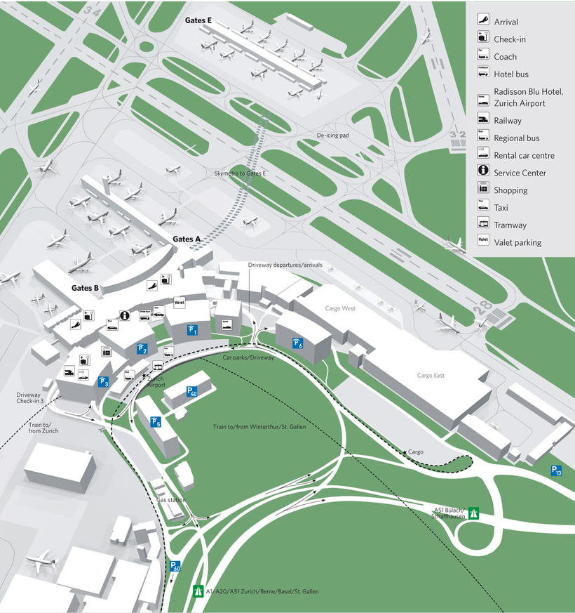 Какой же огромный и красивый аэропорт Клотен, имеющий три терминала и расположенный в 13 километрах от Цюриха.