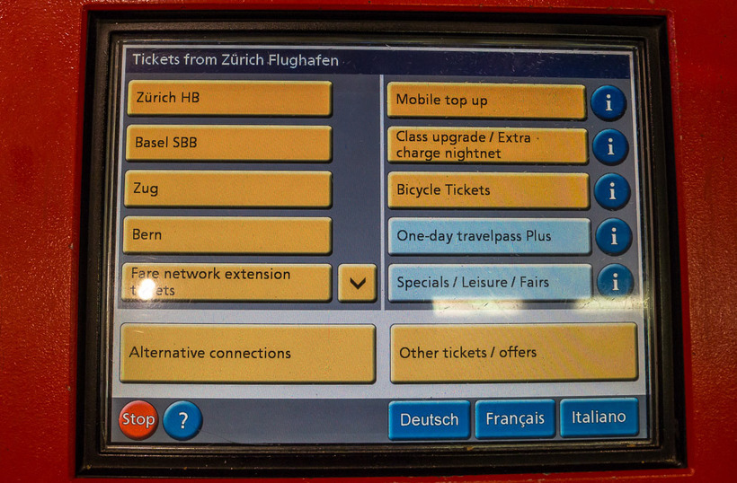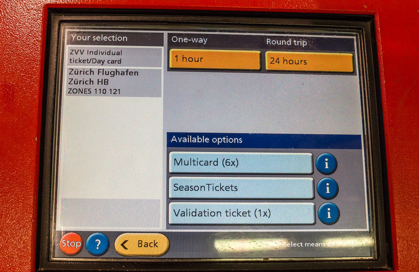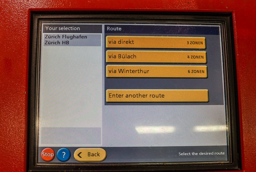 При приобретении билета в аппарате нужно сделать несколько телодвижений, а именно:Для начала работы дотрагиваемся до экрана и выбираем Zurich HB