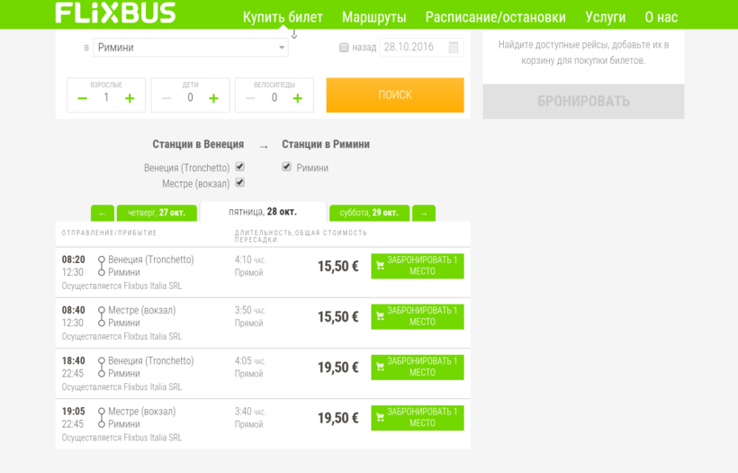 Кроме поезда из Венеции в Римини ездят автобусы.