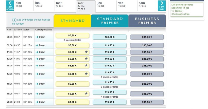 Из Лилля в Лондон курсирует около десятка прямых поездов. Первый рейс доступен для поездки уже в 08.35, последний - в 20.30. Интервал между этими отправками - от одного до двух часов.