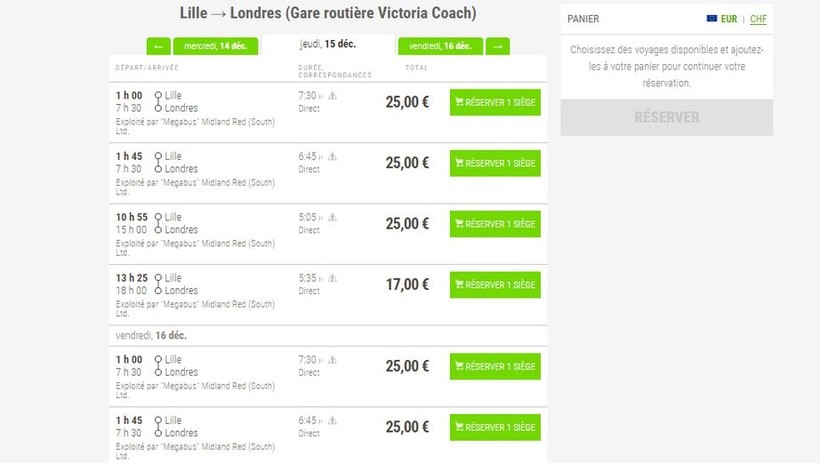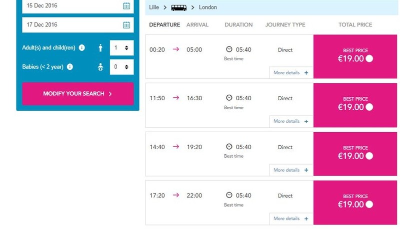 Для поездки из Лилля в Лондон можно воспользоваться следующими автобусами: