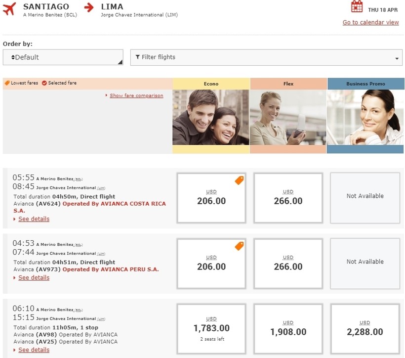 Из Сантьяго в Лиму летают самолеты от Avianca.