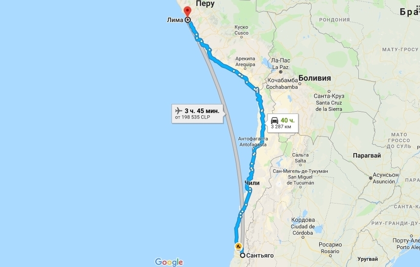 Сантьяго-де-Чили — Лима — маршрут на карте