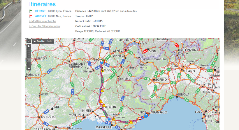 Маршрут из Лиона в Ниццу следующий. Сначала вы выезжаете на автостраду А7 и придерживаетесь ее до Марселя. Здесь нужно повернуть налево в сторону Италии и ехать по дороге А8 до самой Ниццы. Как видите, маршрут совсем несложный.