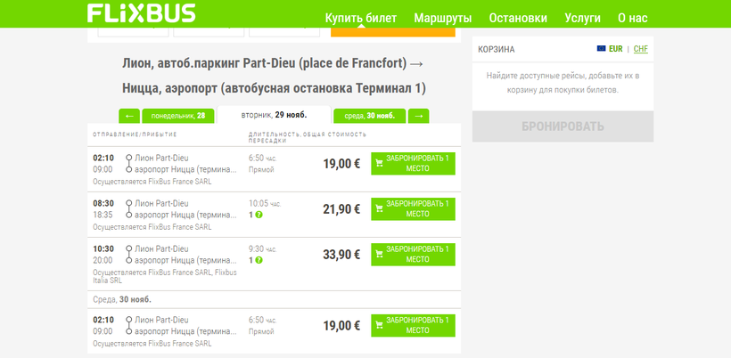 Итак, добраться в Ниццу можно несколькими видами транспорта. Мы с парнем решили подгадать так, чтобы приехать в Ниццу как можно раньше, и выбрали ночной автобус FlixBus.