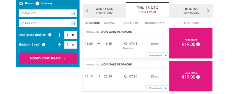Ниже приведена информация о том, сколько часов вам потребуется, чтобы добраться от Ниццы до Лиона, а также приведена примерная стоимость проезда (средняя цена билета) на том или ином виде транспорта.