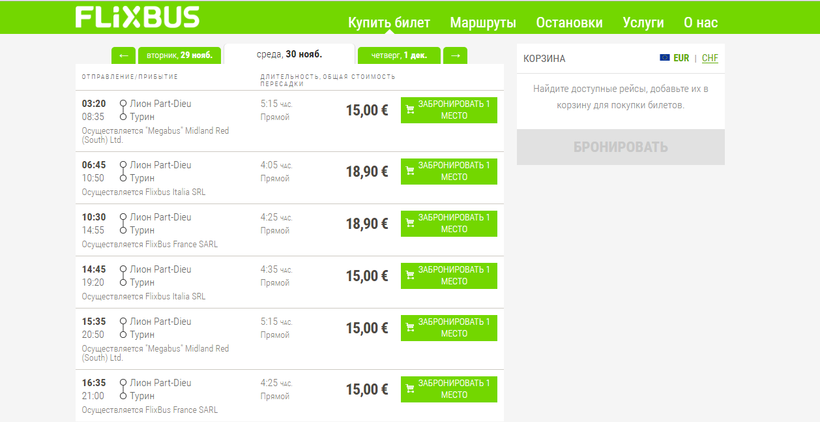 Из Лиона в Турин добраться можно на автобусах нескольких транспортных компаний: