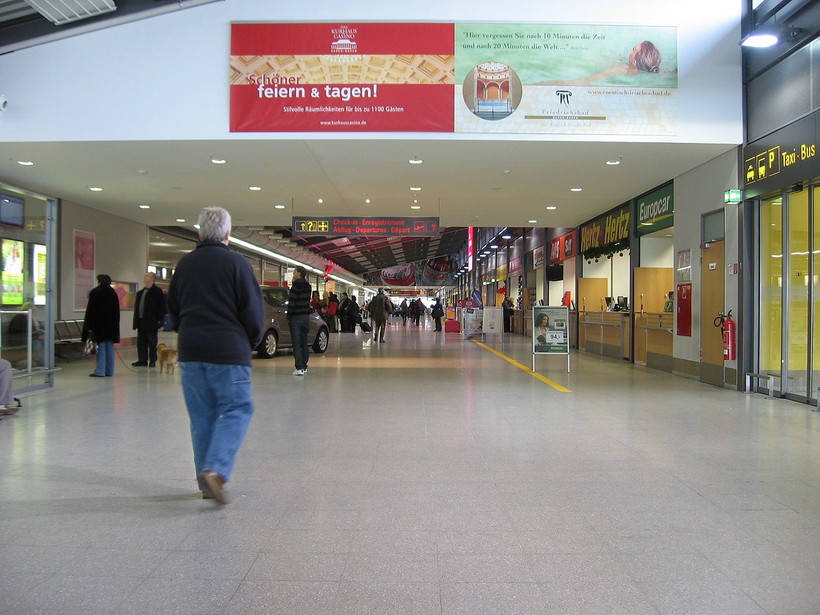 После прибытия, пройдя через терминал, я направился к выходу по указателям направо в сторону турбюро Reiseburos. В аэропорту находятся офисы компаний-перевозчиков, где тут же можно заказать машину. Масса различных закусочных, McDonalds и много другого. Благо, ближайшая остановка оказалась как раз перед выходом из терминала: здесь возможно сесть на такси.