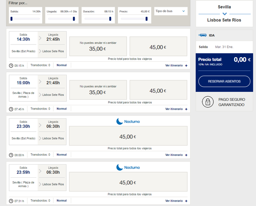 - можно обратиться в кассу автостанции Севильи;