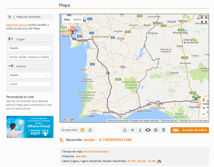 Хочу сказать, что в Испании и Португалии предусмотрена плата за пользование автобанами. Испанская часть дороги является бесплатной, ведь дороги региональные. А вот за проезд по португальским дорогам надо платить, в частности, поездка обойдется в 28 евро. Также придется ехать по мосту 25 de Abril через реку Тежу, проезд там платный - около 2 евро в зависимости от транспортного средства. Рекомендую вам более детально ознакомиться с особенностями вождения по испанским трассам, подробную инфу можно найти здесь.